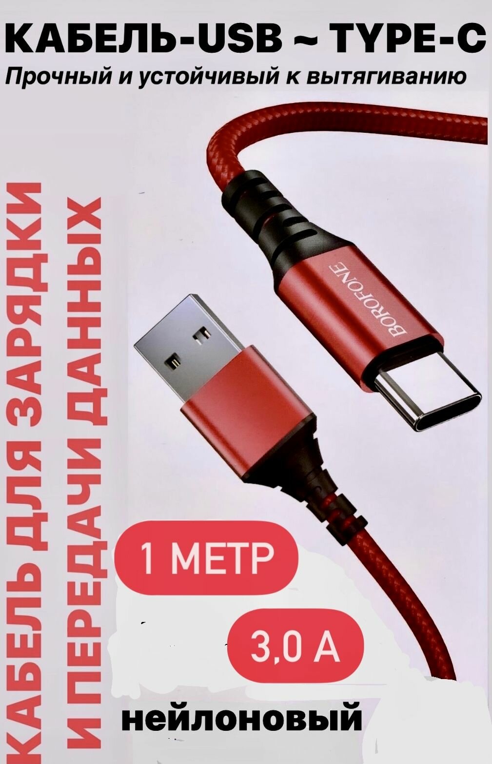 Кабель для зарядки телефона смартфона зарядка передача данных Type-C USB Borofone BX54 плетеный красный