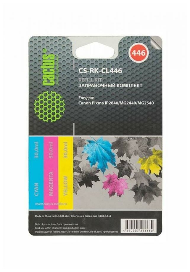 Заправочный набор Cactus CS-RK-CL446 многоцветный 3x30мл для Canon Pixma MG2440MG2540 интересное:
