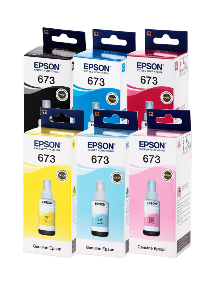 Комплект оригинальных чернил Epson 673, Epson L800, Epson L801, Epson L805, Epson L810, Epson L850, Epson L1800, 70ml*6 673 интересное:
