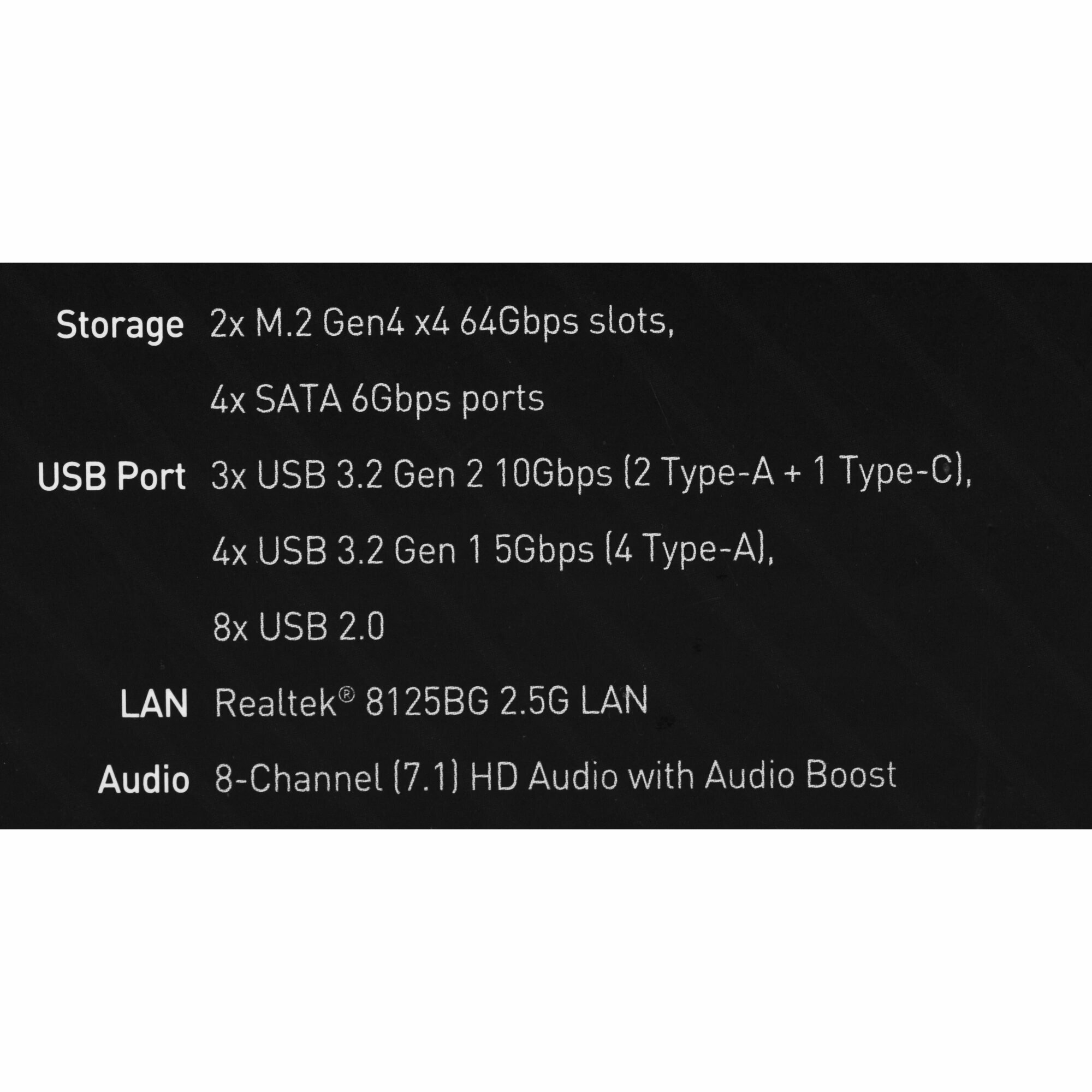 | Слоты накопителей подробно | 4 x SATA 6G, M.2 (Key M) 2260/2280 (PCIe 4.0) |