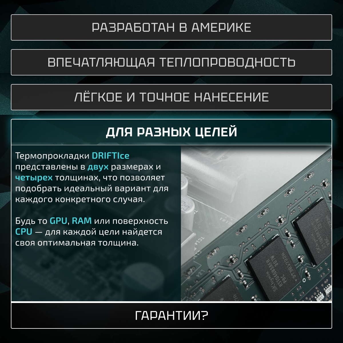 СохранитьТермопрокладка iceberg 40x120x1.0 mm DriftICE (13 W/mK) интересное: