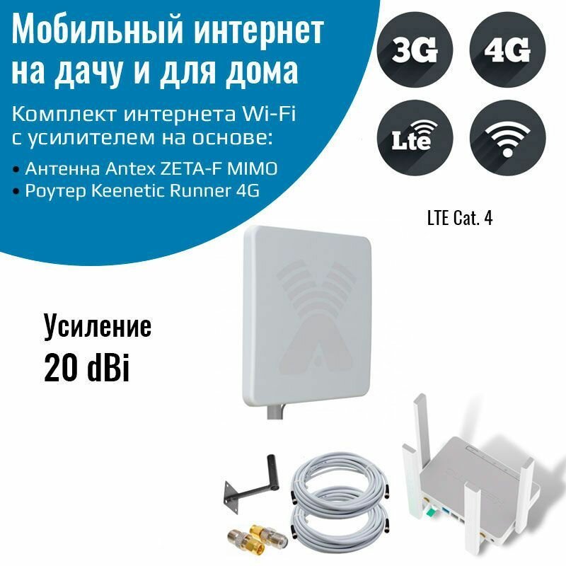 Купить Усилитель интернет сигнала комплект Keenetic Runner 4G с уличной антенной ZETA-F MIMO 20 дБ