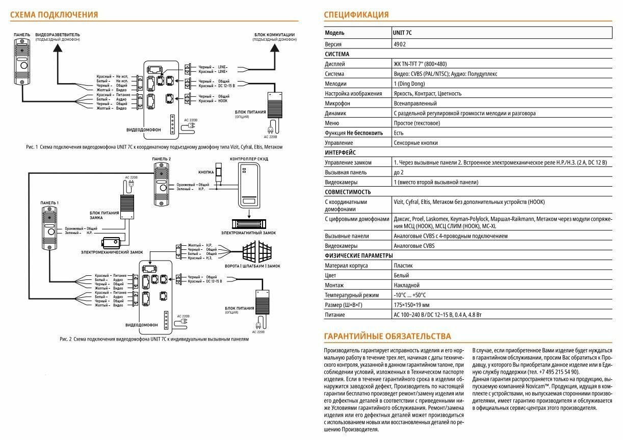 UNIT 7C Novicam v.4902 - монитор аналогового видедомофона; дисплей 7"; Адаптирован для VIZIT, CYFRAL, Метаком интересное: