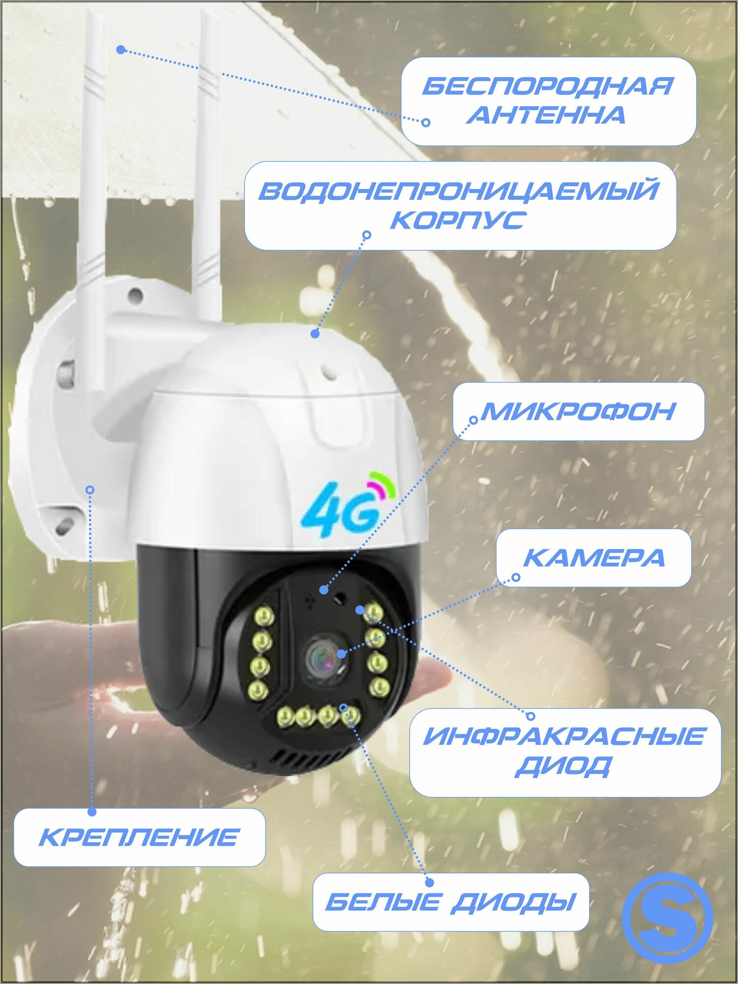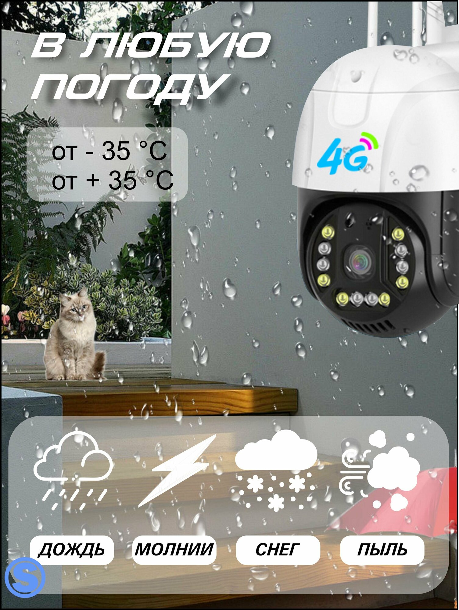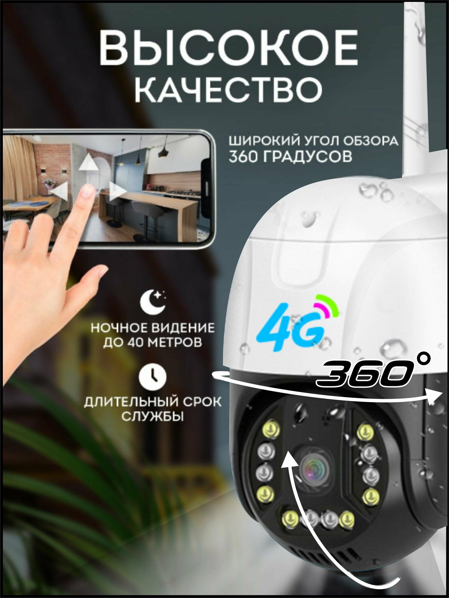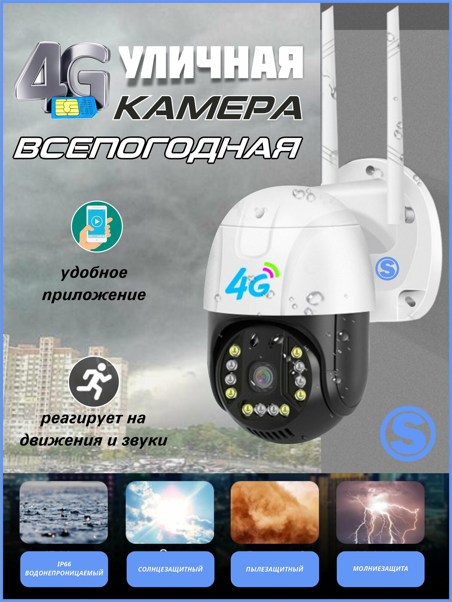 Беспроводная поворотная камера видеонаблюдения с 4G и Wi-Fi, 4 мегапикселя, IP66