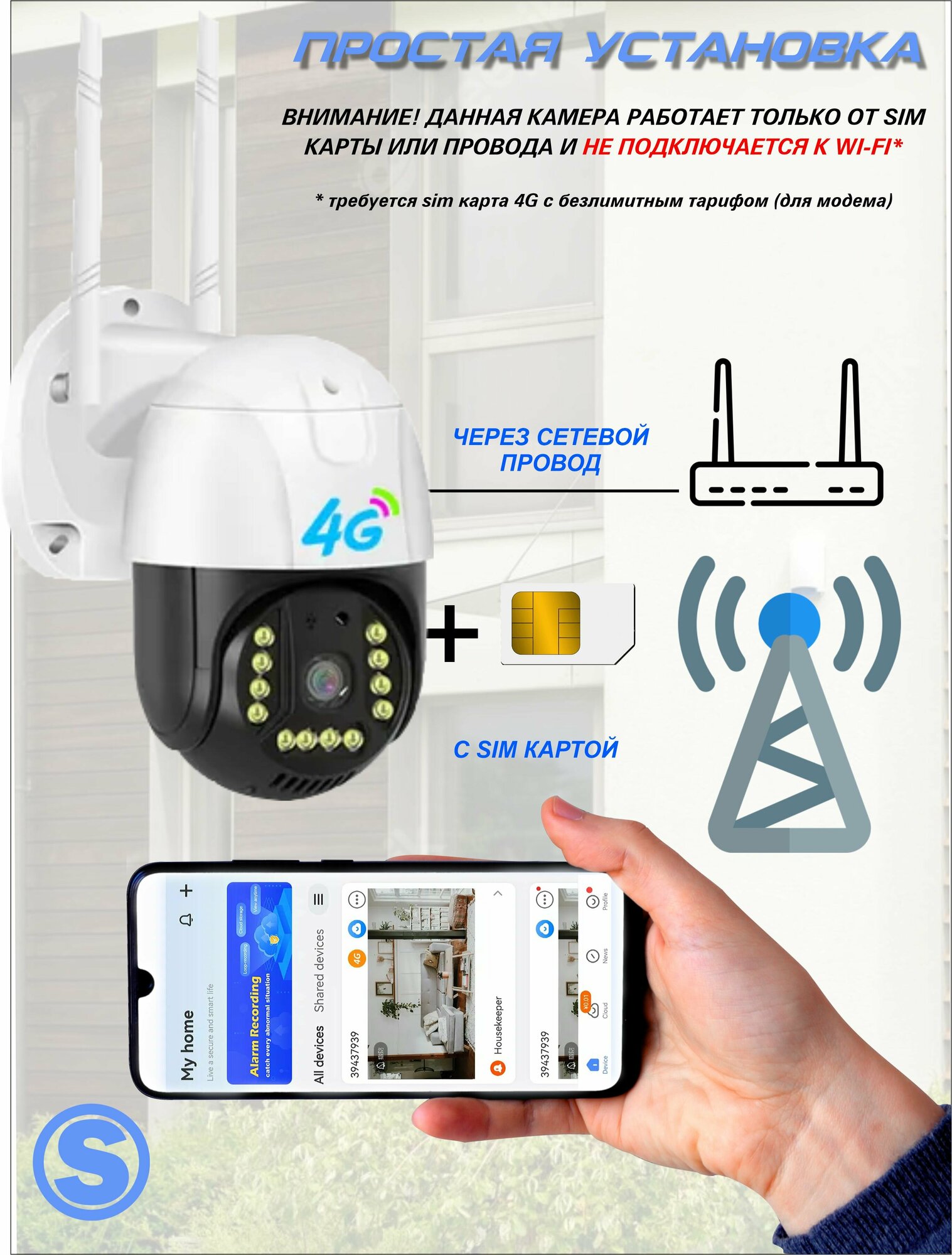 Камера видеонаблюдения с wifi и 4G v380