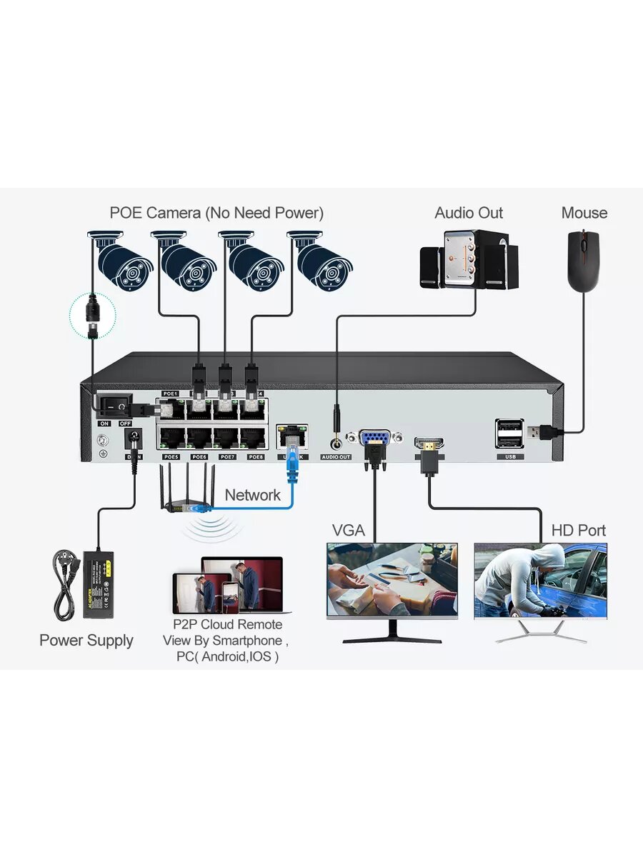 8CH 4MP POE NVR Система видеонаблюдения 608GP
