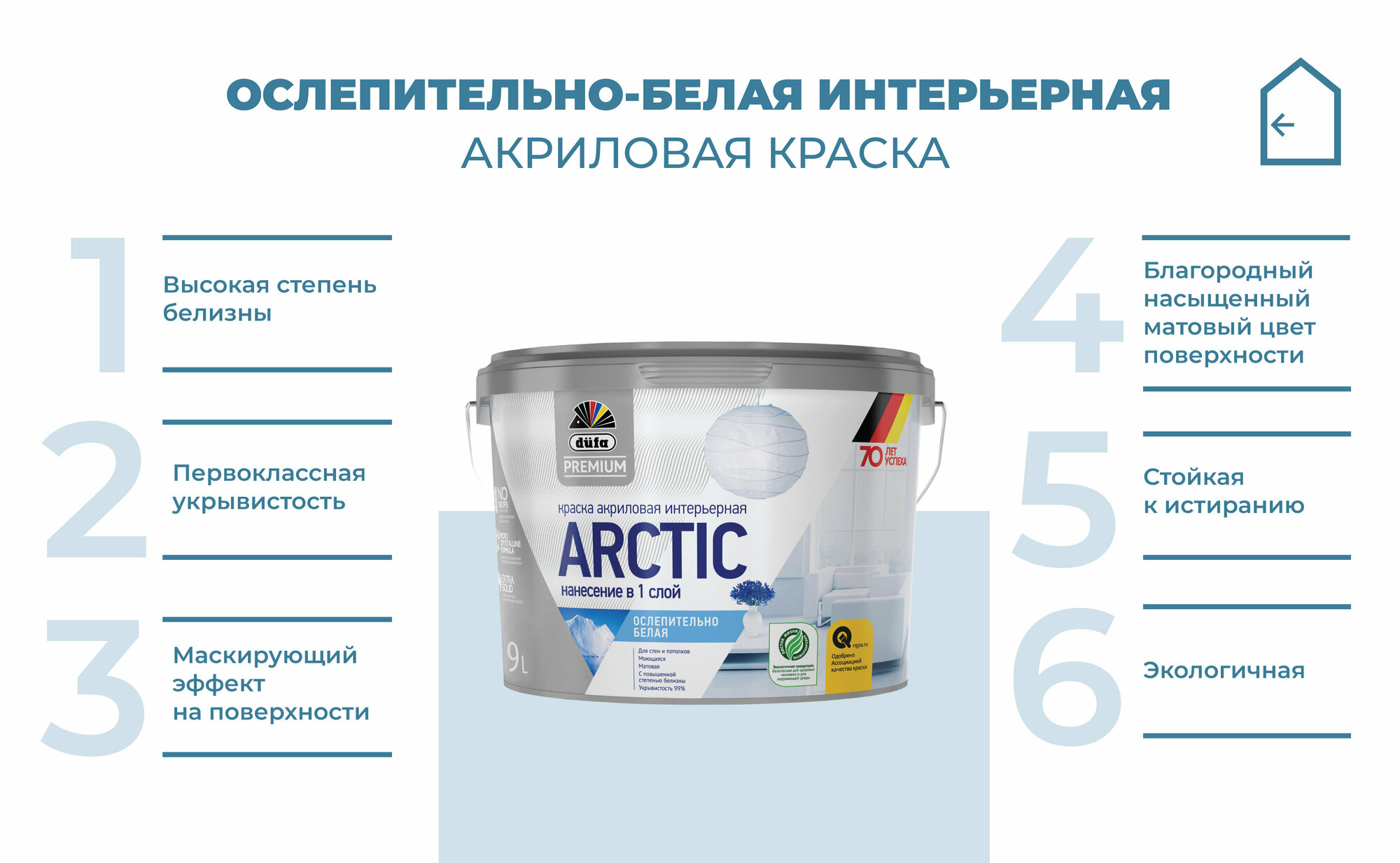 СохранитьDufa Premium ARCTIC / Дюфа Премиум Арктик краска акриловая интерьерная ослепительно белая База 1 9л интересное: