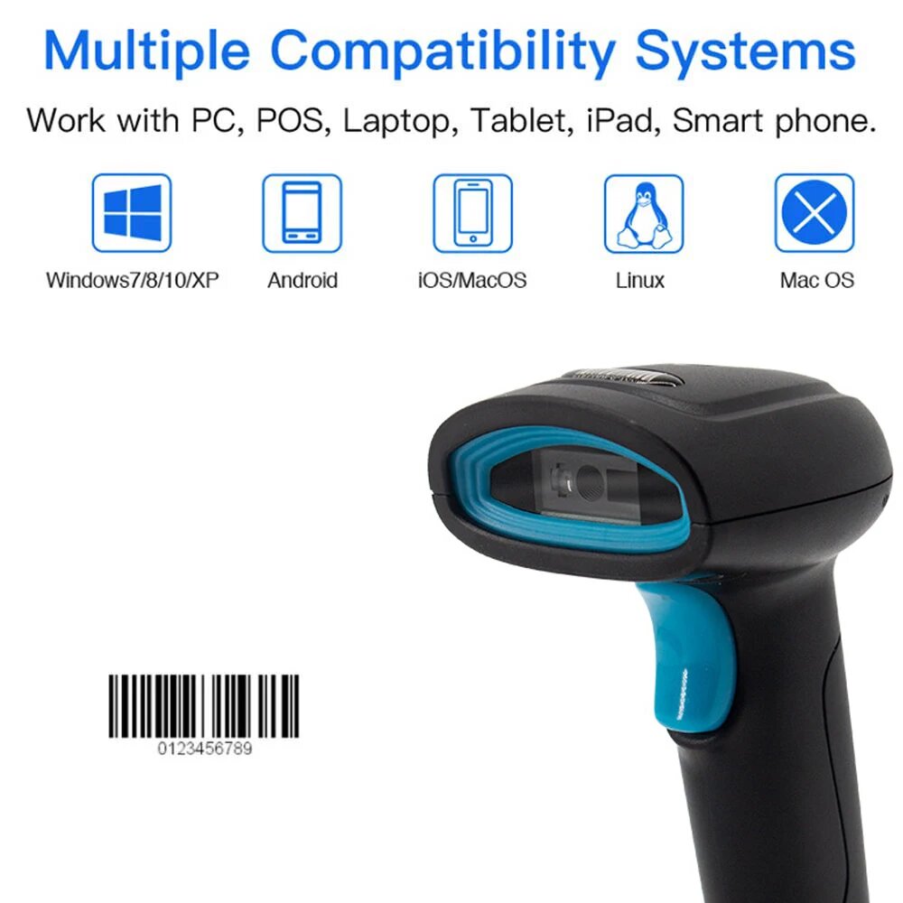 Беспроводной проводной сканер штрих-кодов Holyhah 1D/2D, Bluetooth, считыватель QR-кодов PDF417, портативный считыватель штрих-кодов с подставкой