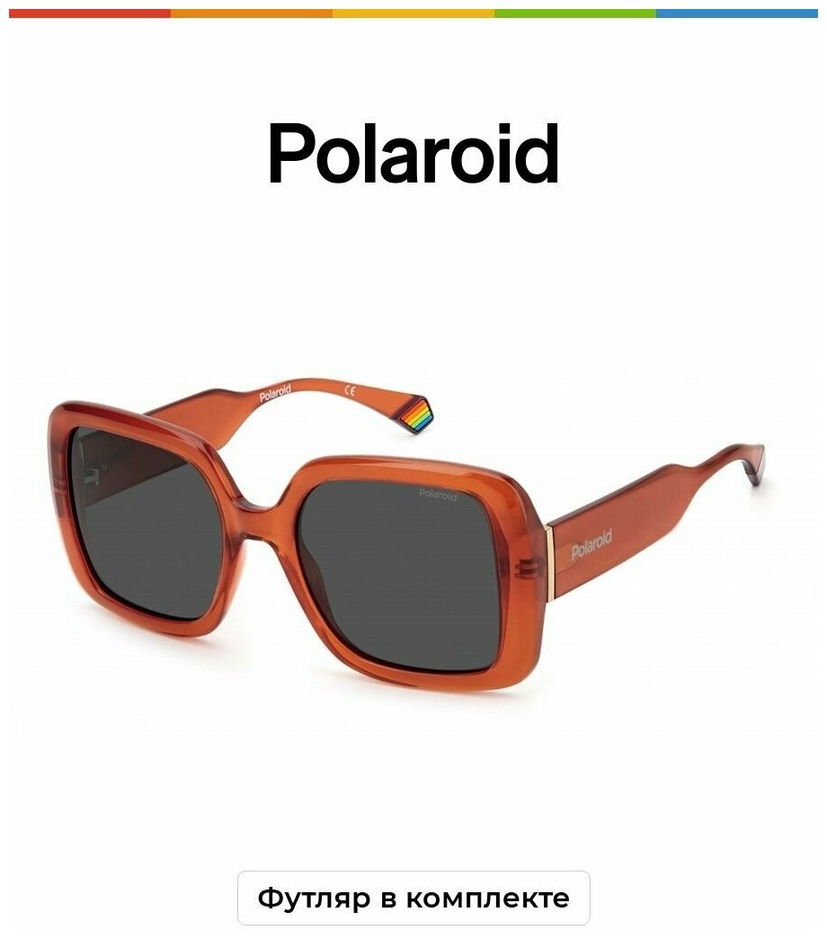 СохранитьЖенские солнцезащитные очки Polaroid PLD 6168/S L7Q M9, цвет: оранжевый, цвет линзы: серый, квадратные, поликарбонат интересное: