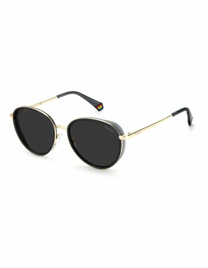 Купить Мужские и женские солнцезащитные очки Polaroid PLD 6150/S/X KB7 M9, цвет: золотой, цвет линзы: серый, круглые, поликарбонат