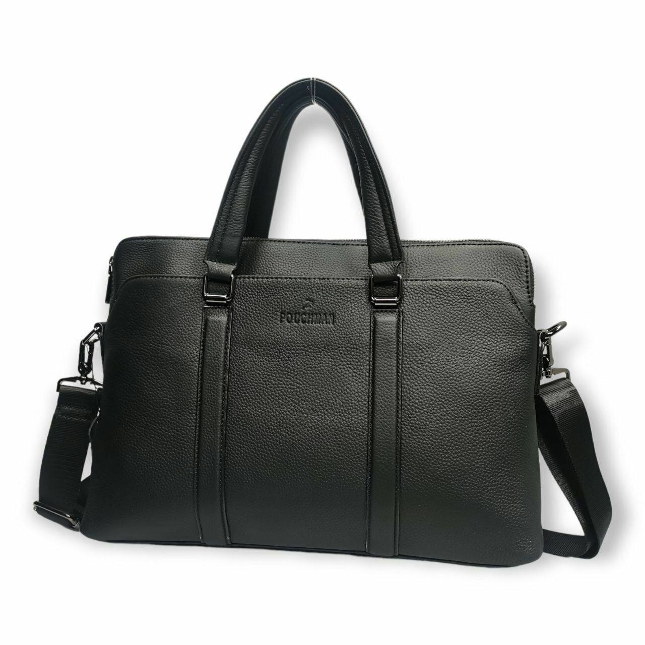 Портфель мужской, кожаный PouchMan, деловой, для документов и ноутбука, с ручками