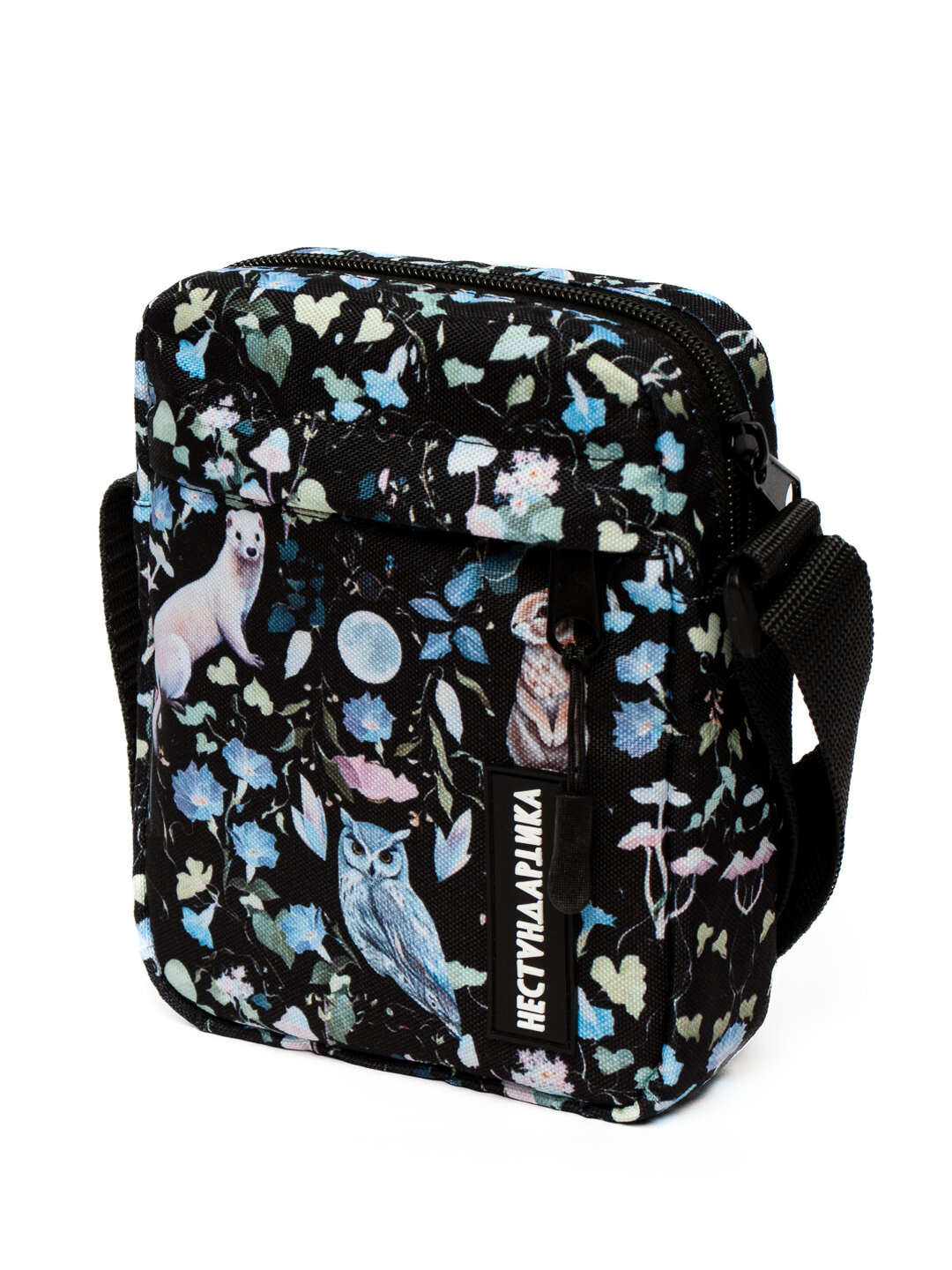 Мини-сумка мессенджер женская, мужская через плечо для телефона с принтом Полуночные цветы