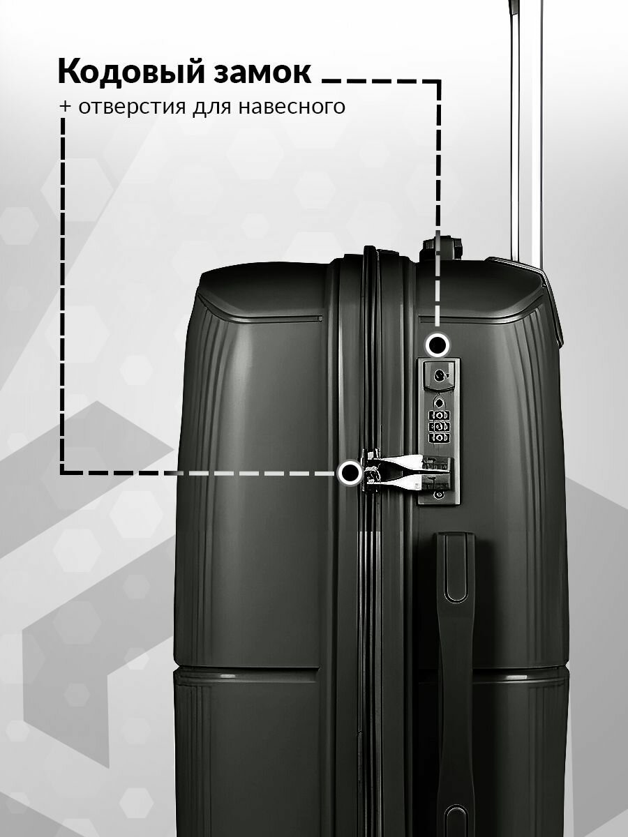 Чемодан на колесах средний М полипропилен пластиковый Doha, дорожный, ударопрочный, кодовый замок, 61см, 45л