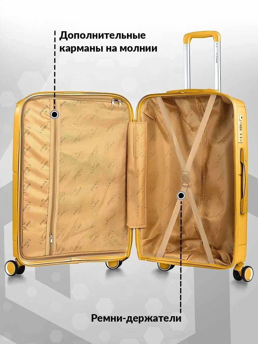 Чемодан на колесах M средний, серый - Чемодан полипропилен, семейный Lcase