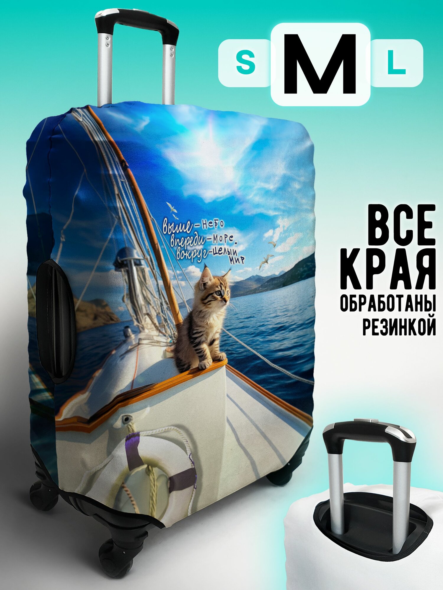 Купить Чехол для чемодана Котик в море Размер М 55x65 MARRENGO