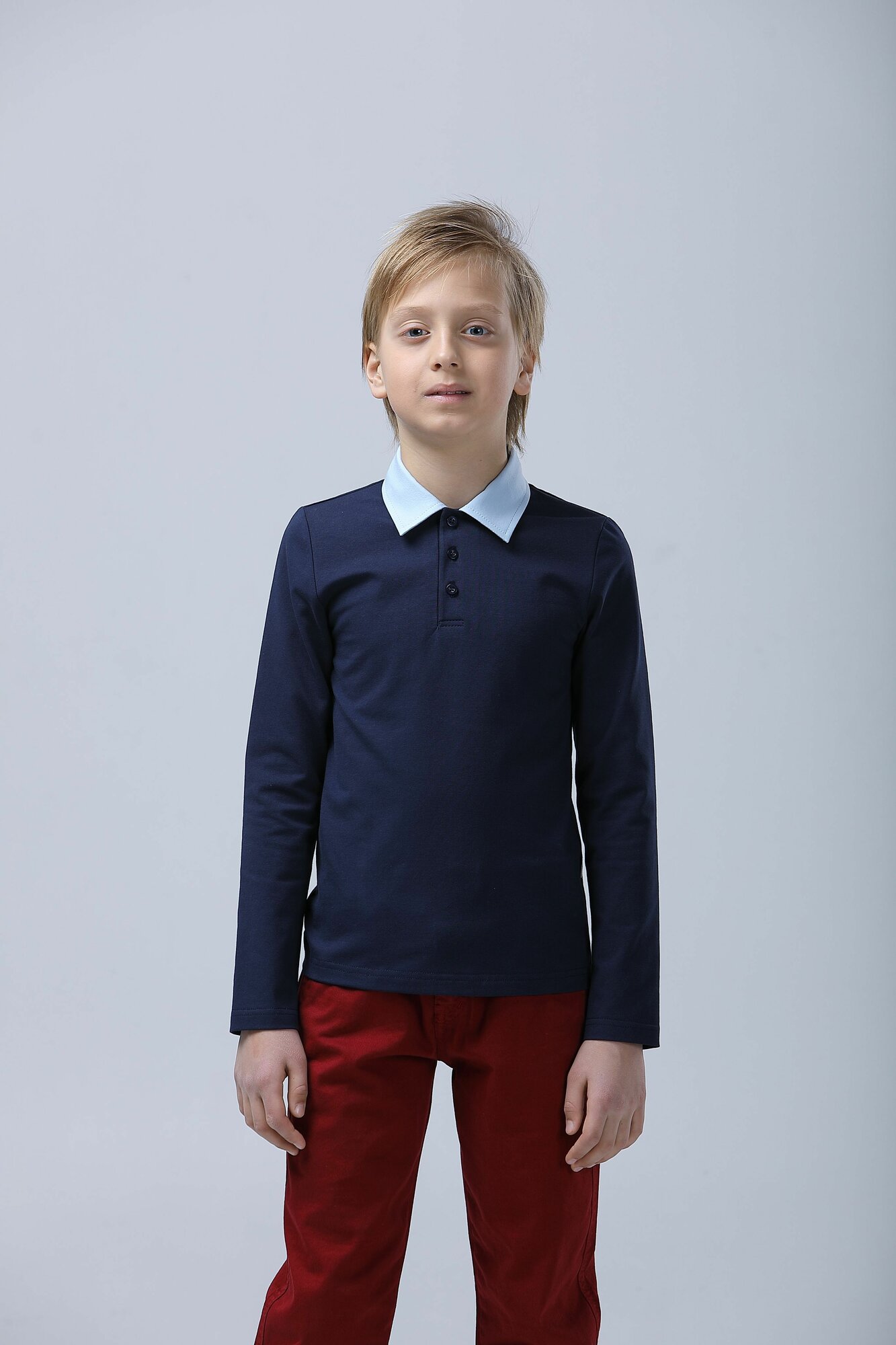 Купить Поло для мальчика с длинным рукавом для школы синее152