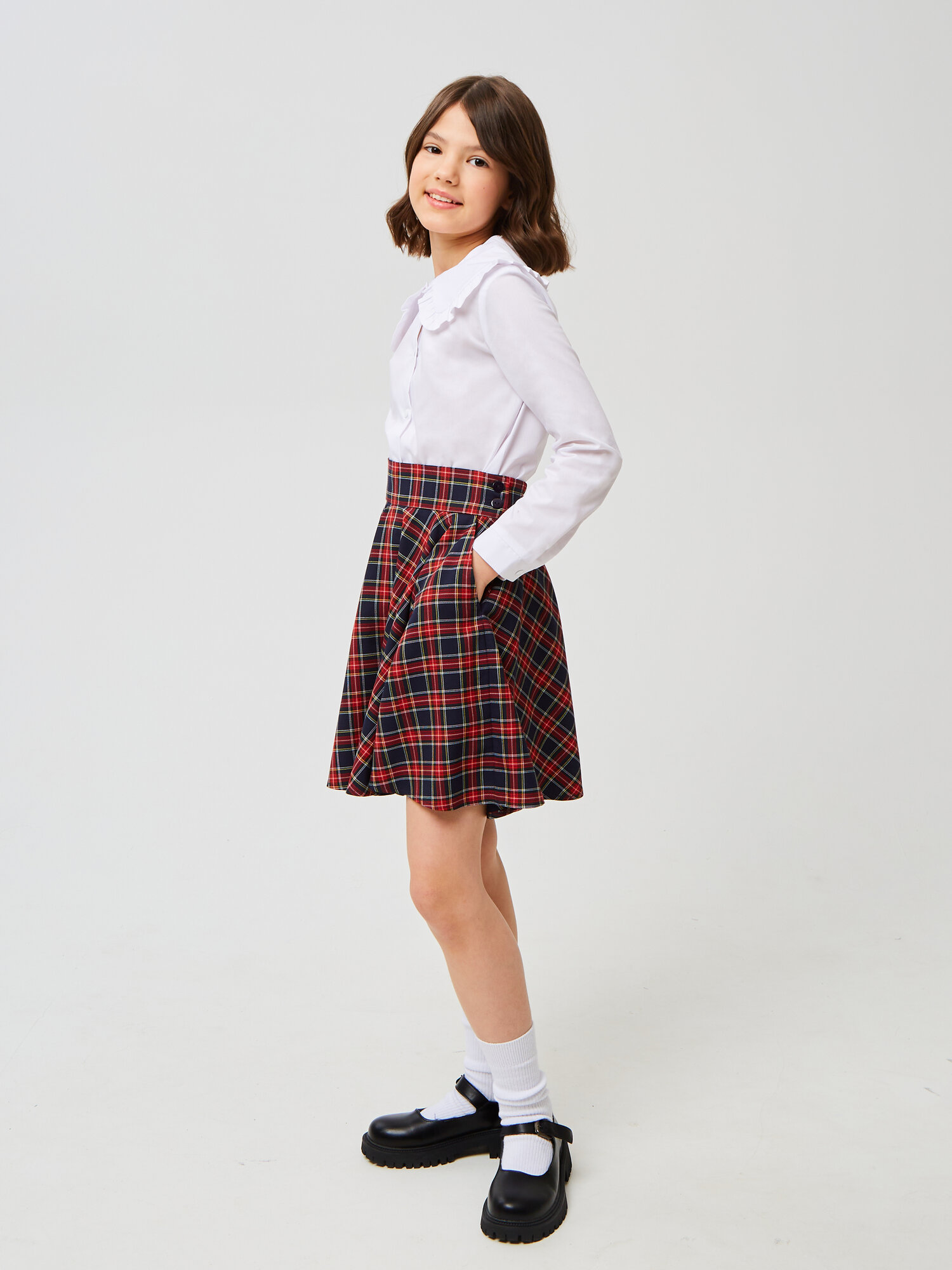 Юбка для девочки S088.08, сине-красная_клетка, 158-76