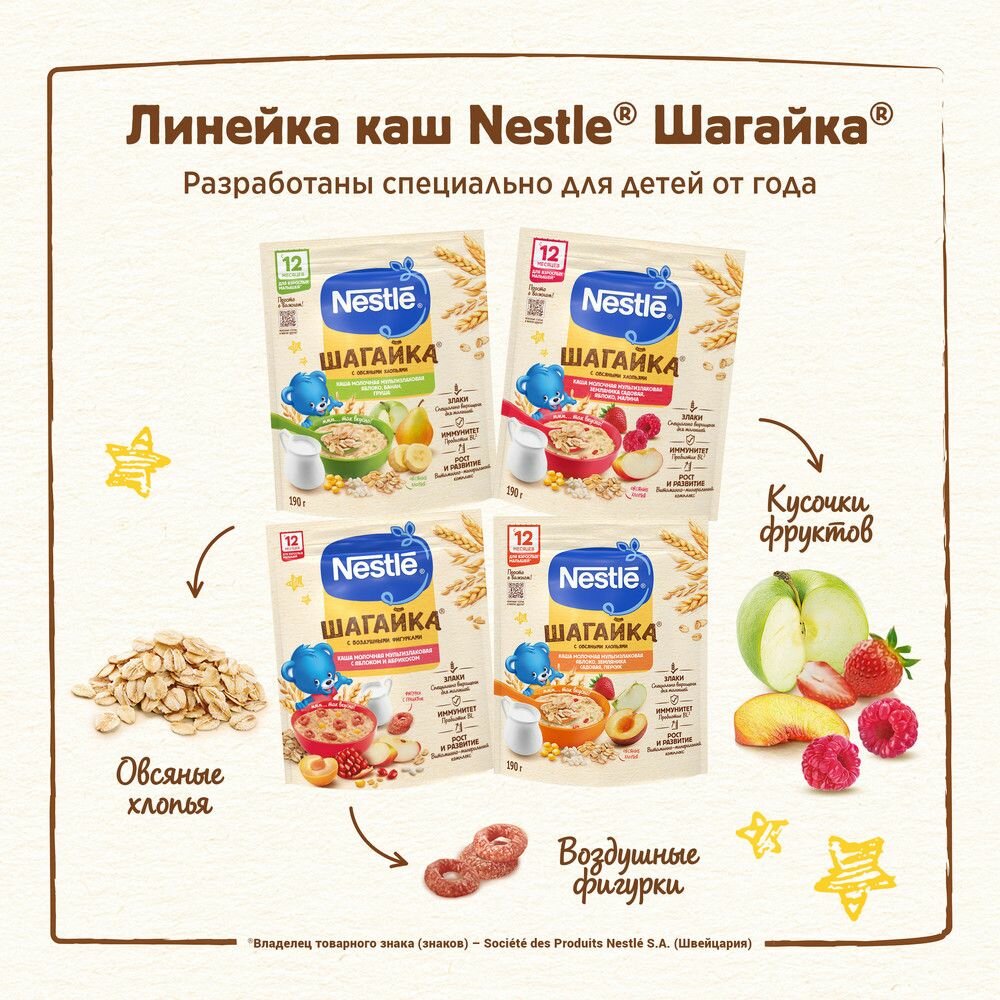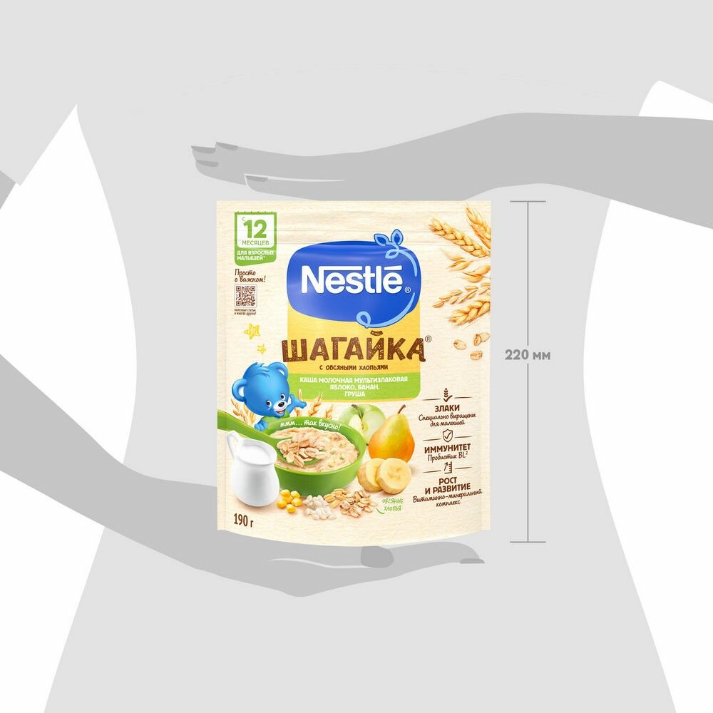 Каша мультизлаковая NESTLE Шагайка молочная, с яблоком, бананом и грушей, с 12 месяцев, 190г
