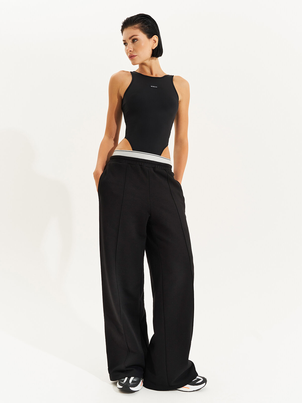 Купить Боди NEVERLATE женское эластичное обтягивающее с круглым воротом и высоким вырезом бедра черное