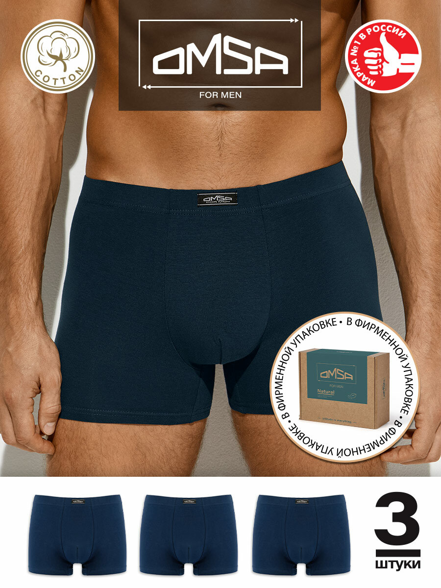Купить Трусы мужские B_OmB 1233 Боксеры с закрытой резинкой Blu Scuro 48(L) комплект 3шт