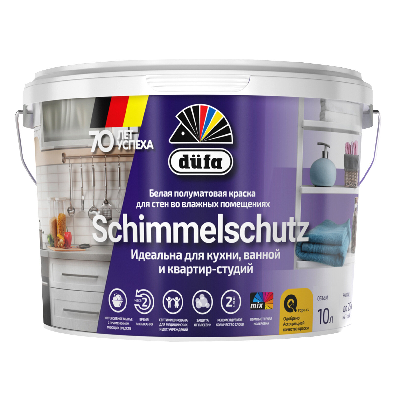 Краска для стен и потолков для влажных помещений водно-дисперсионная Dufa Schimmelchutz полуматовая 10 л.