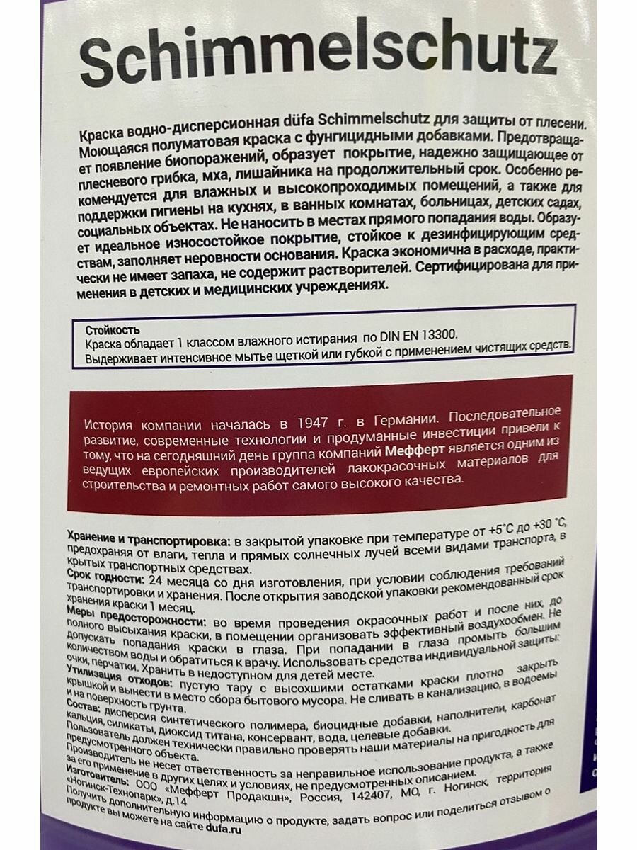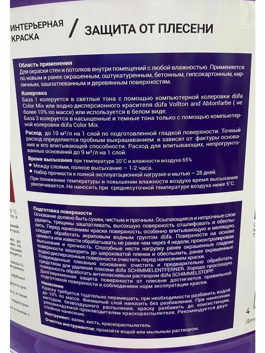 СохранитьДюфа Schimmelschutzfarbe база 1 белая краска влагостойкая полуматовая (10л) / DUFA Schimmelschutzfarbe base 1 краска влагостойкая для кухни ванной ква интересное: