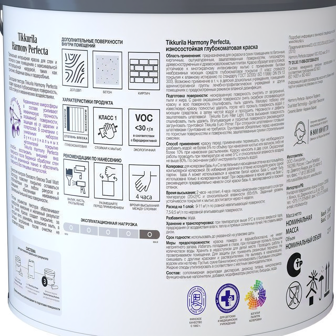 Tikkurila HARMONY PERFECTA / Тиккурила Гармония Перфекта краска интерьерная, глубокоматовая А 0,9л
