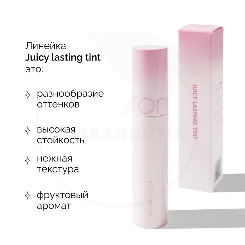 СохранитьТинт глянцевый для губ | Rom&nd Juicy Lasting Tint 33 Bare Vine интересное: