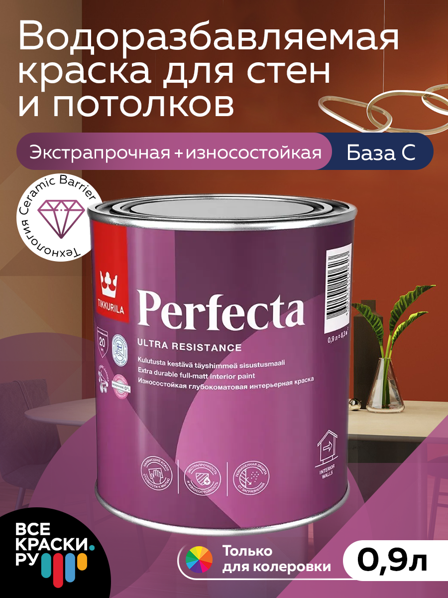 Купить Tikkurila Perfecta Износостойкая интерьерная краска (под колеровку, глубокоматовый, база C, 0,9 л)
