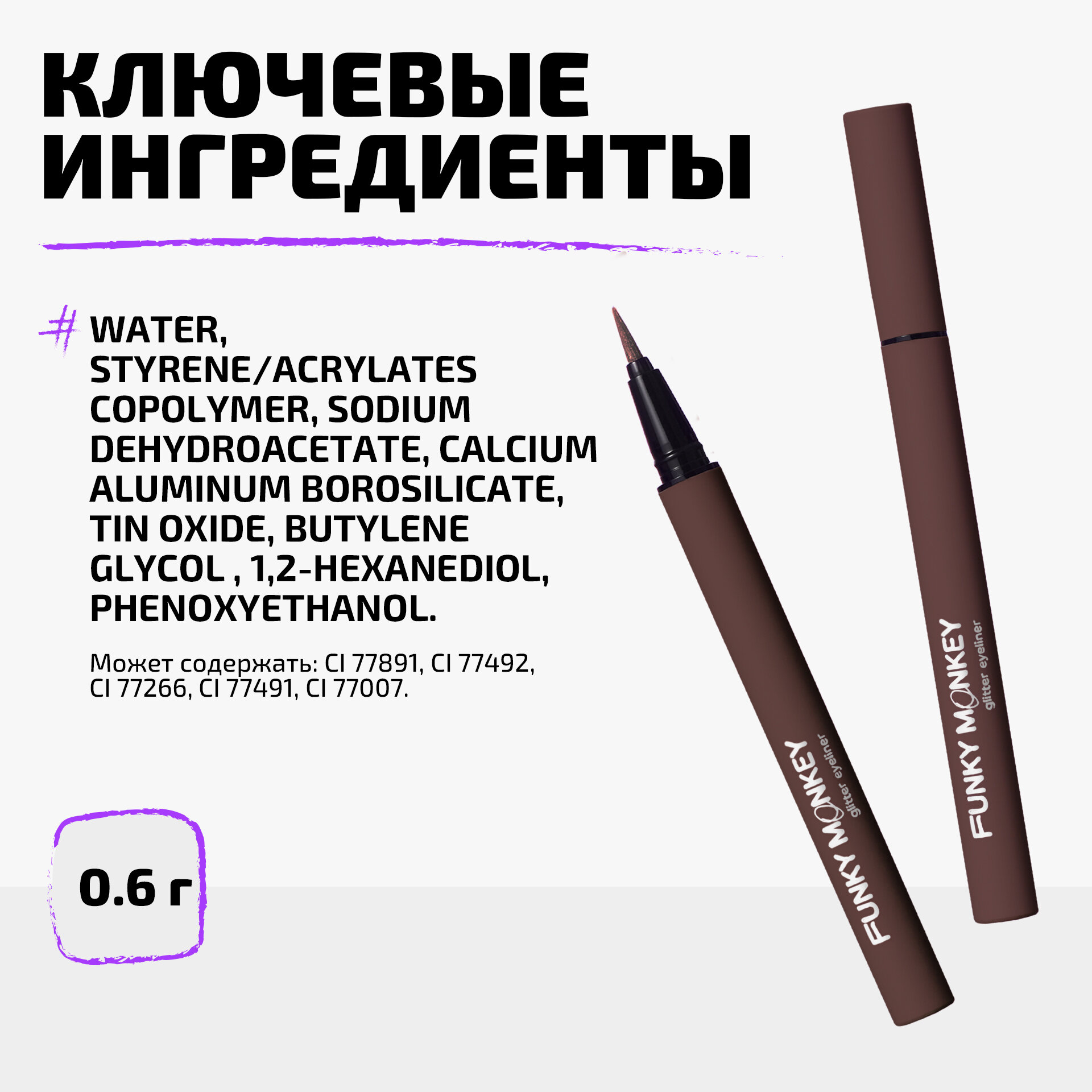 FUNKY MONKEY Маркер для глаз сияющий Glitter eyeliner, 0,6 г, 06