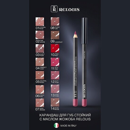 RELOUIS Карандаш для губ стойкий С маслом жожоба тон 11 rich pink насыщенный розовый
