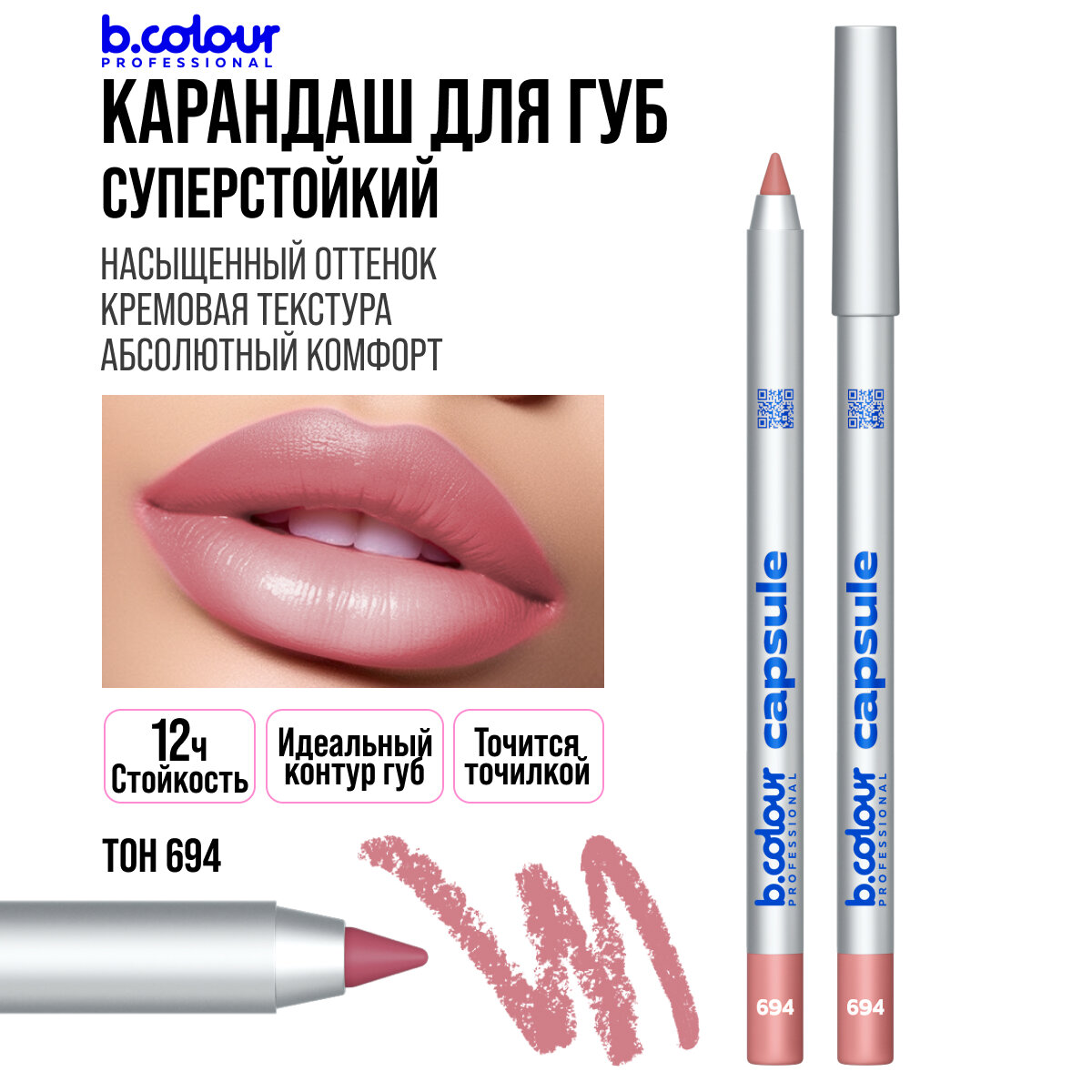 B.COLOUR PROFESSIONAL Карандаш для губ матовый стойкий нюд CAPSULE 694