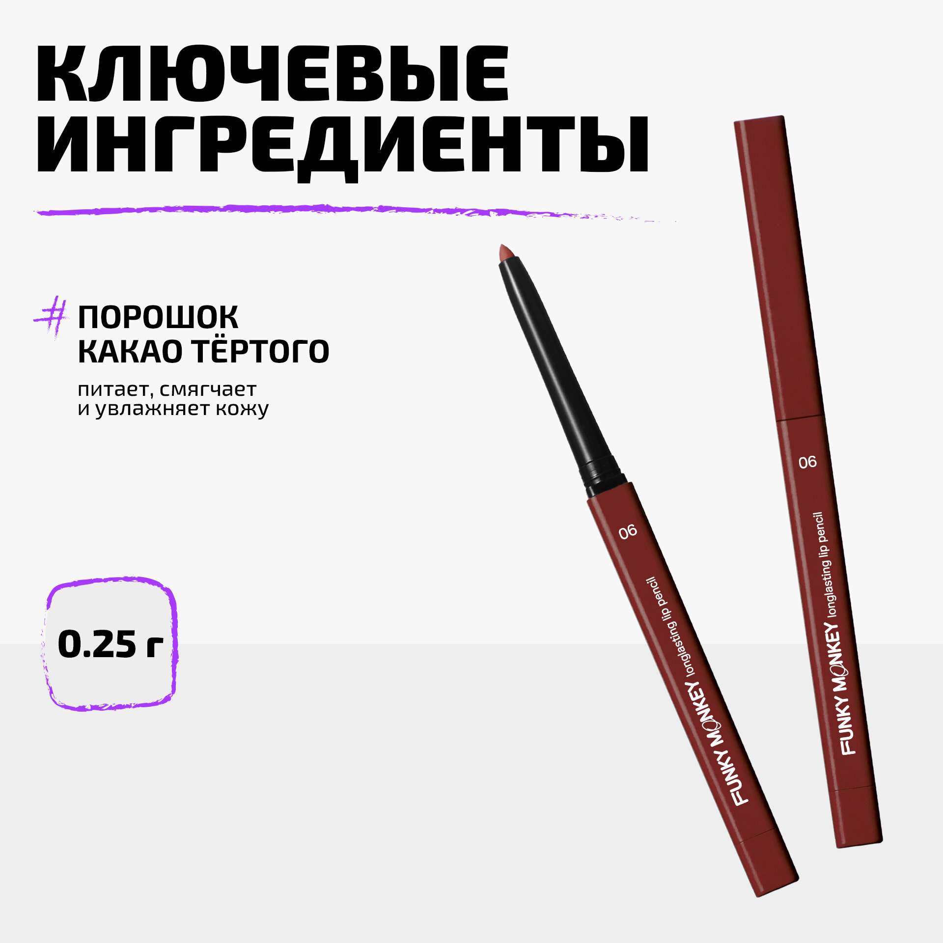 Funky Monkey Карандаш для губ стойкий Longlasting lip pencil тон 06