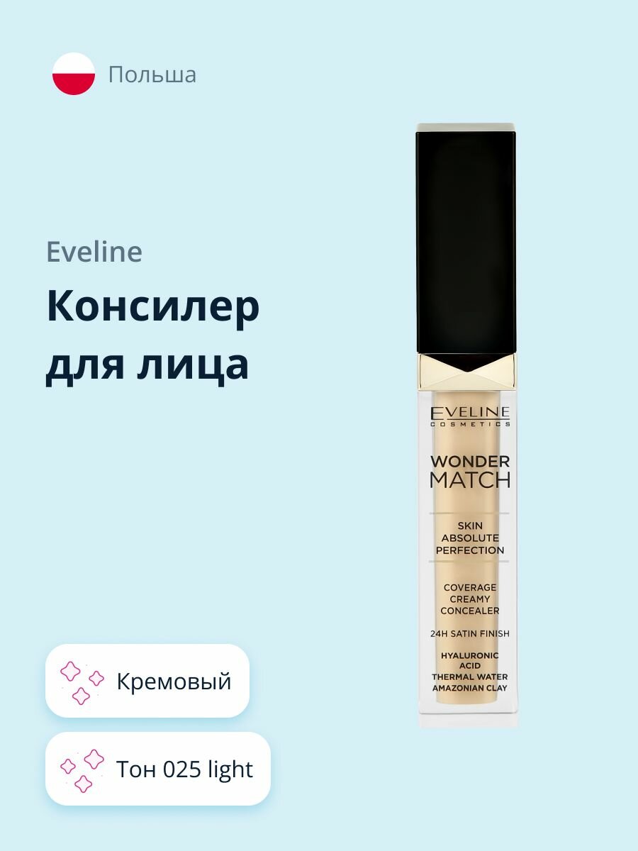 Купить Консилер EVELINE Wonder Match, оттенок 025 light