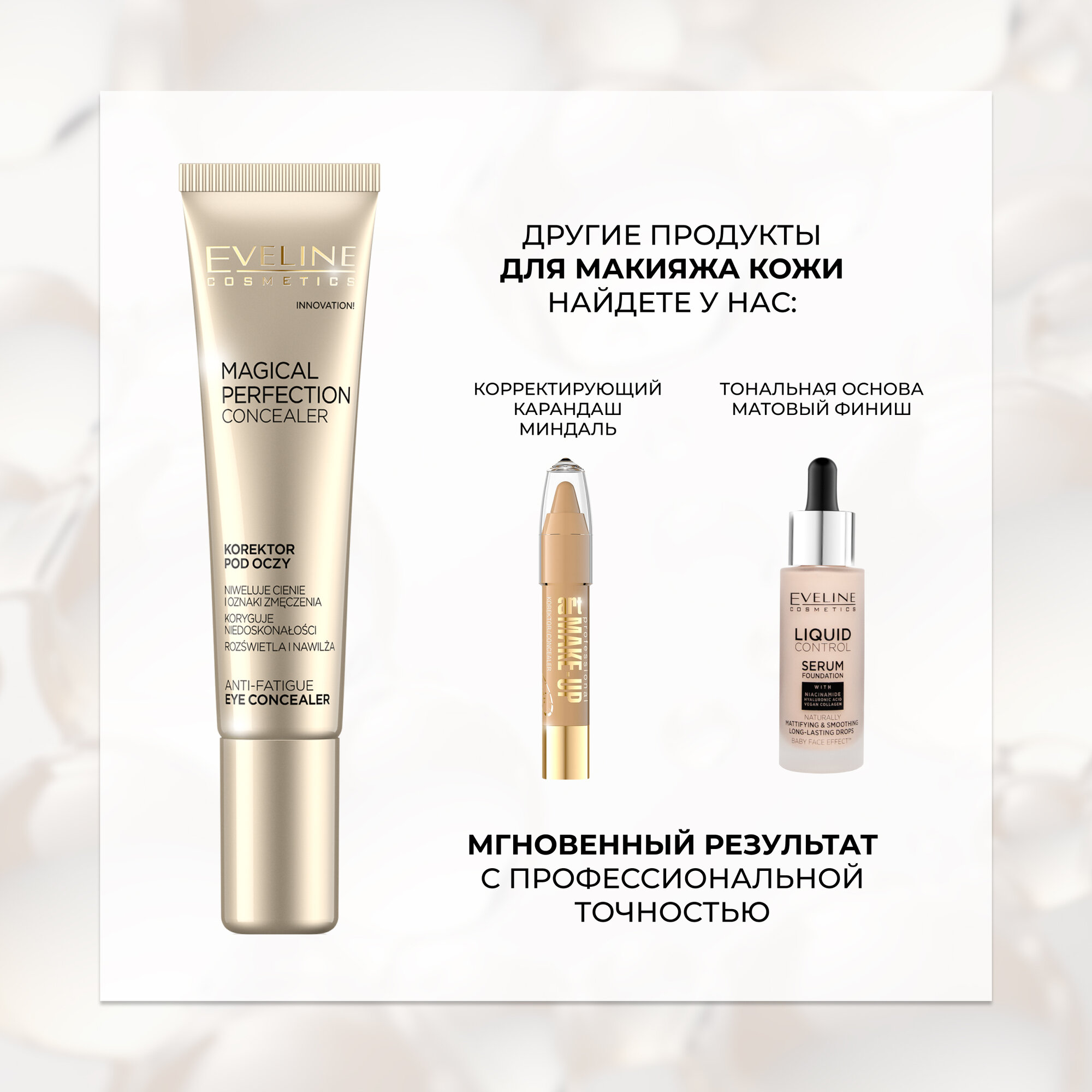 EVELINE Консилер под глаза MAGICAL PERFECTION тон №01 LIGHT, 15 мл