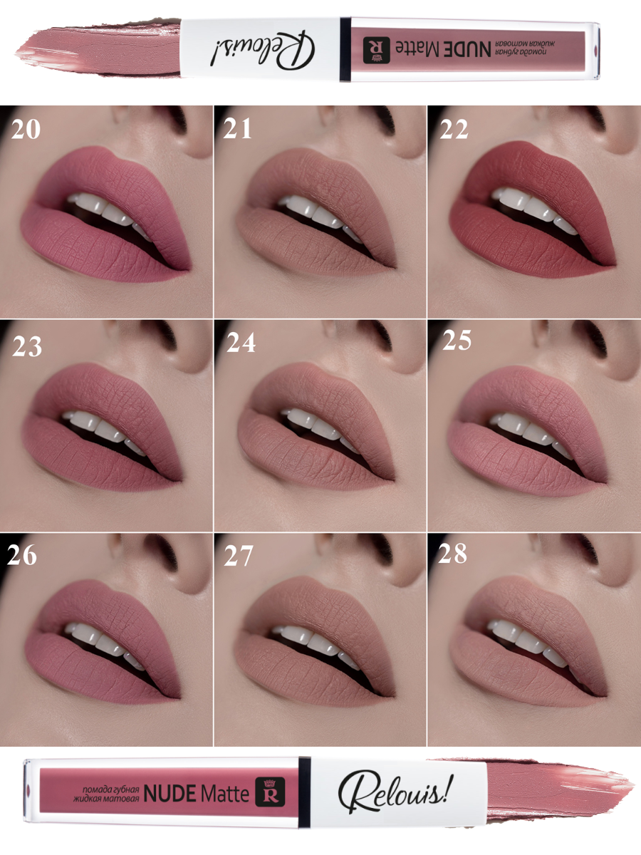 Relouis Помада губная Nude Matte, жидкая, матовая, тон 28, 2 шт