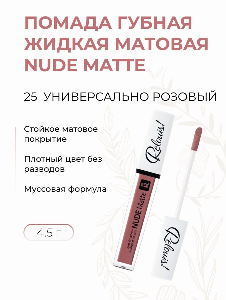 Помада губная жидкая матовая "Nude Matte Complimenti! Relouis" №25 универсальный розовый