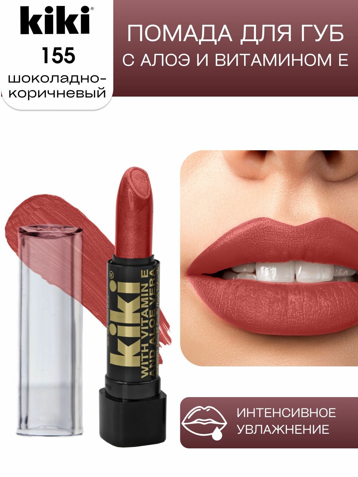 Купить Помада для губ kiki с aloe & vit E тон 155 шоколадно-коричневый с перламутром стойкая увлажняющая глянцевая, кики
