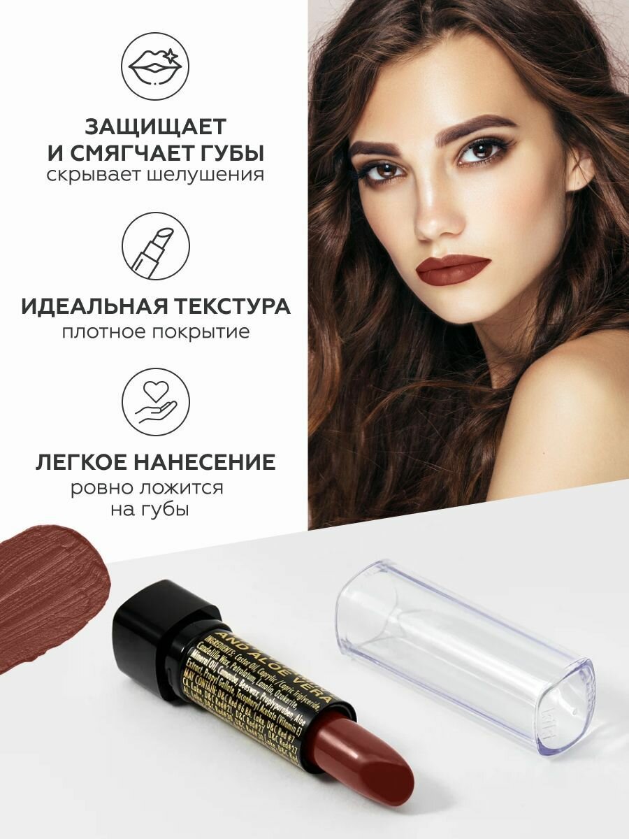 Помада для губ kiki с aloe & vit E тон 034 темно-коричневый стойкая увлажняющая глянцевая, кики