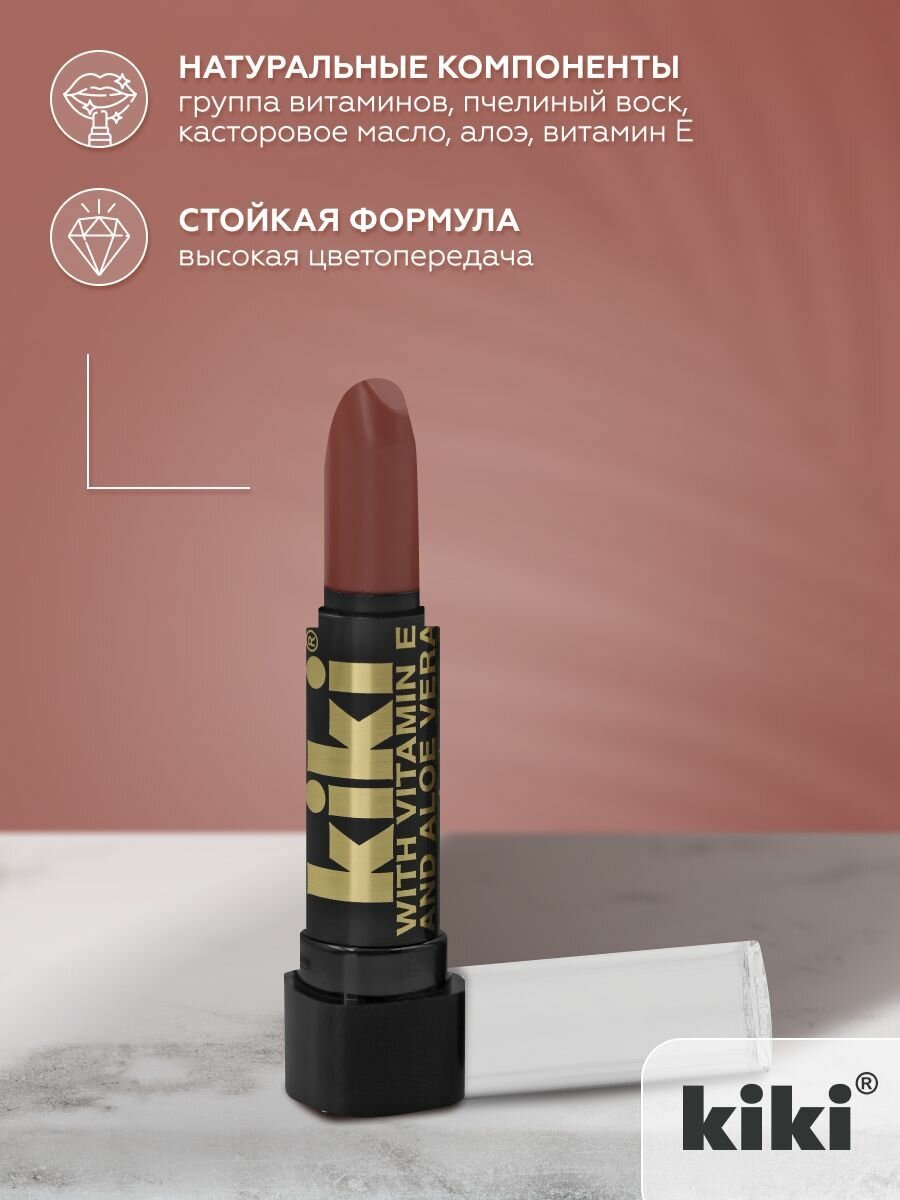 Помада для губ kiki с aloe & vit E тон 010 коричневый стойкая увлажняющая глянцевая, кики