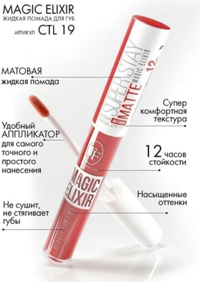 Помада для губ суперстойкая жидкая матовая TF Cosmetics Magic Elixir CTL19 т.99 10 мл