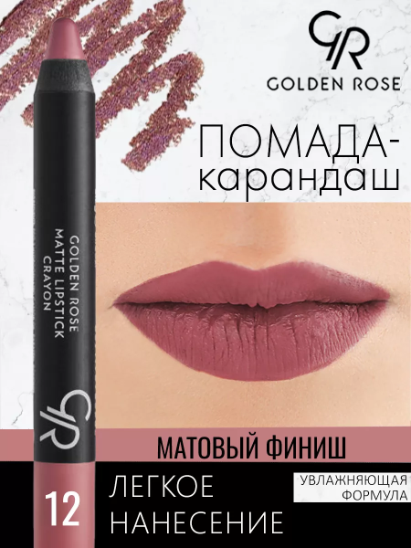 Golden Rose Помада-карандаш для губ Matte Crayon, тон 12