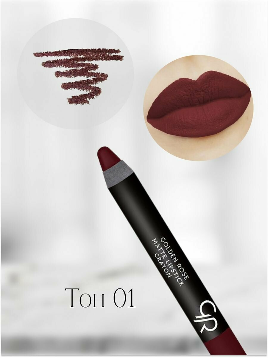 Помада-карандаш для губ GOLDEN ROSE "Matte Crayon", тон 02, Красное вино