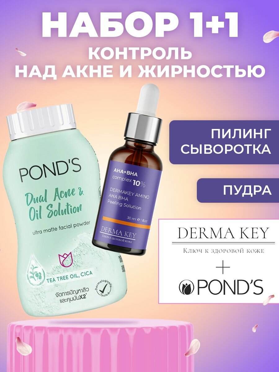 СохранитьНабор по уходу за лицом "Контроль над акне и жирностью" пилинг-сыворотка и пудра матирующая, 80 мл интересное: