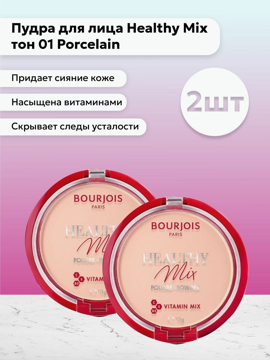 Bourjois Paris / Набор 2 шт Пудра для лица Healthy тон 01 Porcelain 10 г интересное: