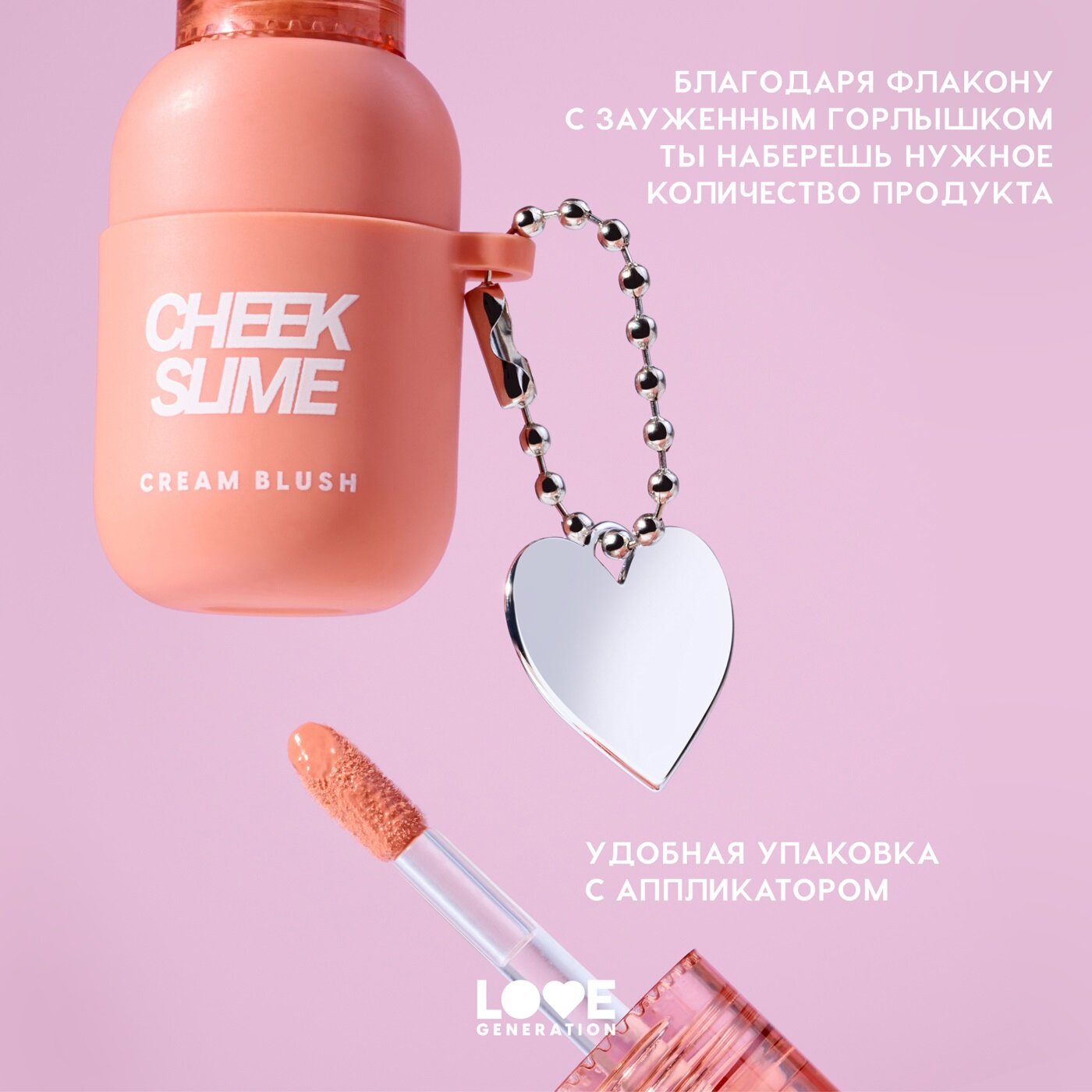 Румяна Love Generation Cheek Slime для лица, глянцевый финиш, тон 02, розовый, 6 мл