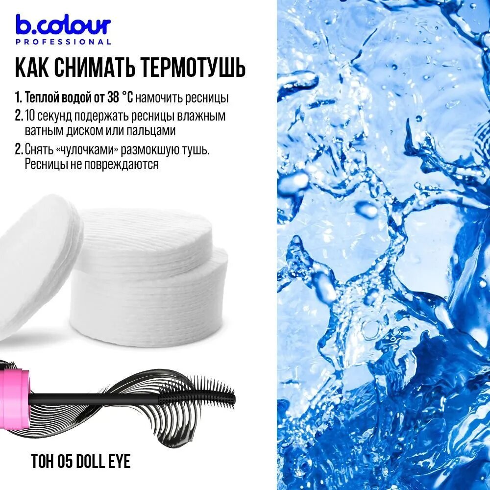 B.COLOUR PROFESSIONAL Тушь для ресниц, термотушь черная подкручивающая, удлиняющая, CAPSULE 05 Doll eye
