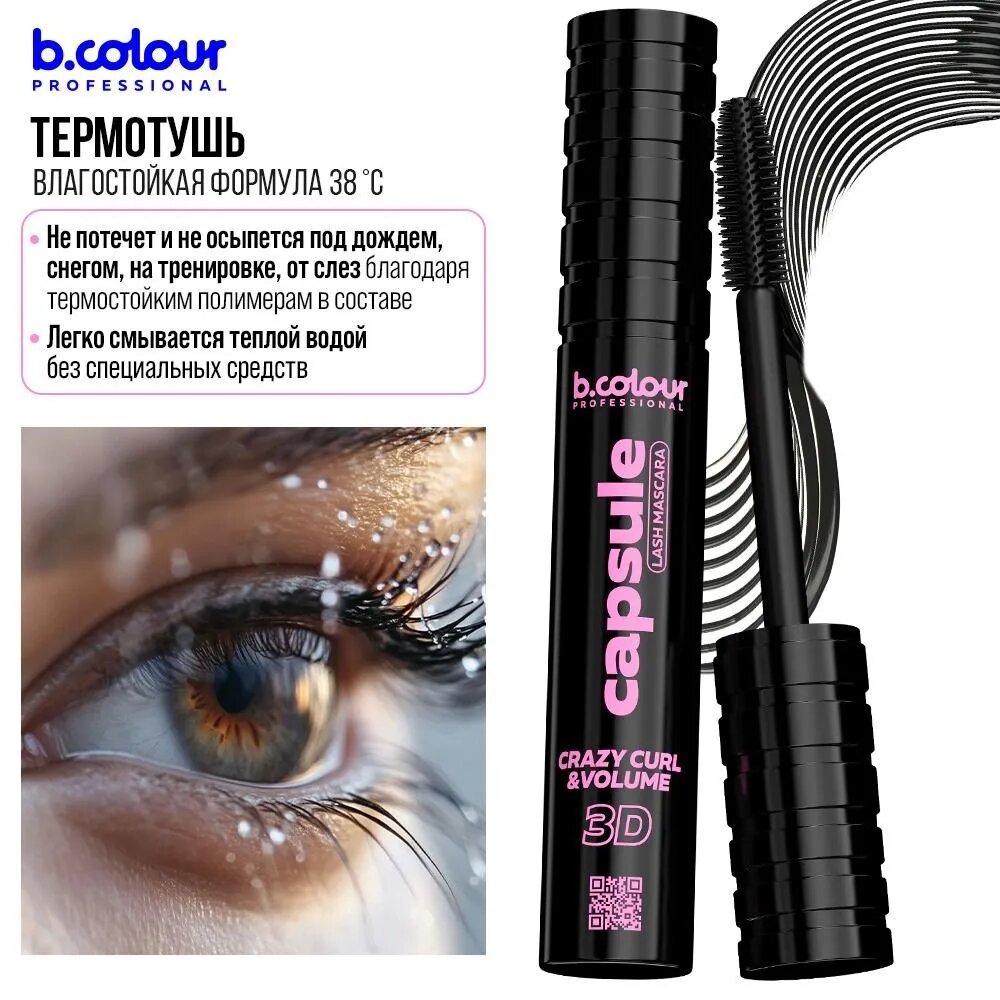B.COLOUR PROFESSIONAL Тушь для ресниц, термотушь, черная, удлиняющая CAPSULE 03 Crazy curl