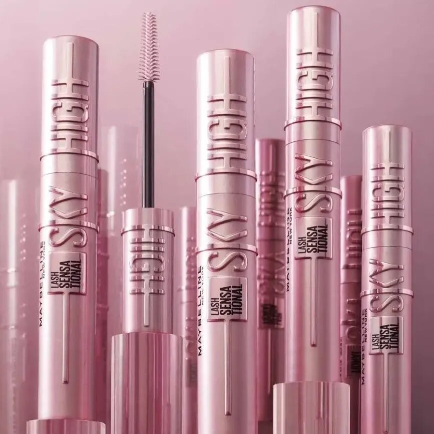 Maybelline New York Тушь для ресниц Lash Sensational Sky High Pink Air, розовая удлиняющая объемная,