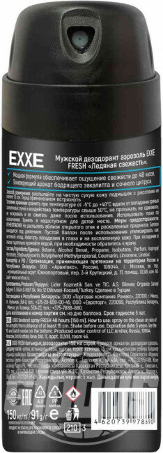 EXXE MEN Дезодорант мужской аэрозоль Ледяная свежесть, FRESH, 150 мл